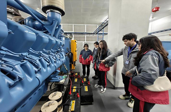 在供電機(jī)房和變壓機(jī)房中,中心工程師生動(dòng)地講解了云計(jì)算中心供配電的“雙保險(xiǎn)”系統(tǒng),并結(jié)合高低壓配電柜、不間斷電源(UPS)、柴油發(fā)動(dòng)機(jī)等設(shè)備原理,向同學(xué)們闡述了當(dāng)市電故障時(shí),上千臺(tái)服務(wù)器如何通過精確的電壓調(diào)控和分配對云計(jì)算中心“無縫續(xù)命”。同學(xué)們在現(xiàn)場瘋狂燃燒“CPU”,計(jì)算出了一桶柴油的轉(zhuǎn)化率,極大地激發(fā)了同學(xué)們的學(xué)習(xí)興趣。