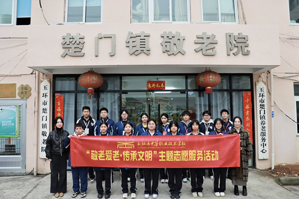 為大力弘揚中華民族尊老敬老傳統美德,深入推進新時代文明實踐活動和教育系統志愿服務工作。在第62個“3·5學雷鋒日”來臨之際,3月4日下午,玉環市中等職業技術學校積極響應玉環市教育局的號召,組織學生會干部及志愿者學生前往楚門鎮敬老院,開展以“敬老愛老,傳承文明”為主題的學雷鋒志愿服務活動。