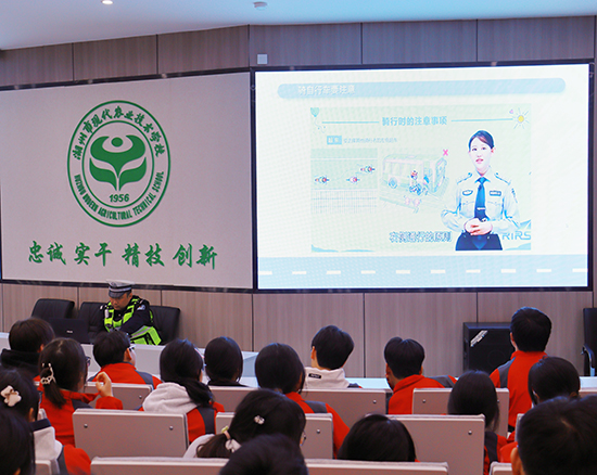 為增強學生的交通安全意識,提高自我保護能力,預防道路安全事故發生,3月3日,湖州市埭溪交警中隊的交警走進湖州市現代農業技術學校,為學生帶來一場別開生面的交通安全講座。