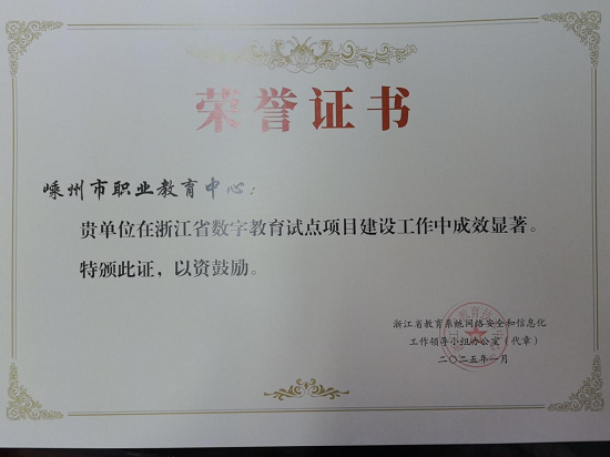 近日,嵊州市職業教育中心在浙江省數字教育試點項目建設中取得了顯著成效,并順利完成了省信息化標桿校的建設任務。這一成果得到了浙江省教育技術中心的高度認可,并寄來了“喜報”。
