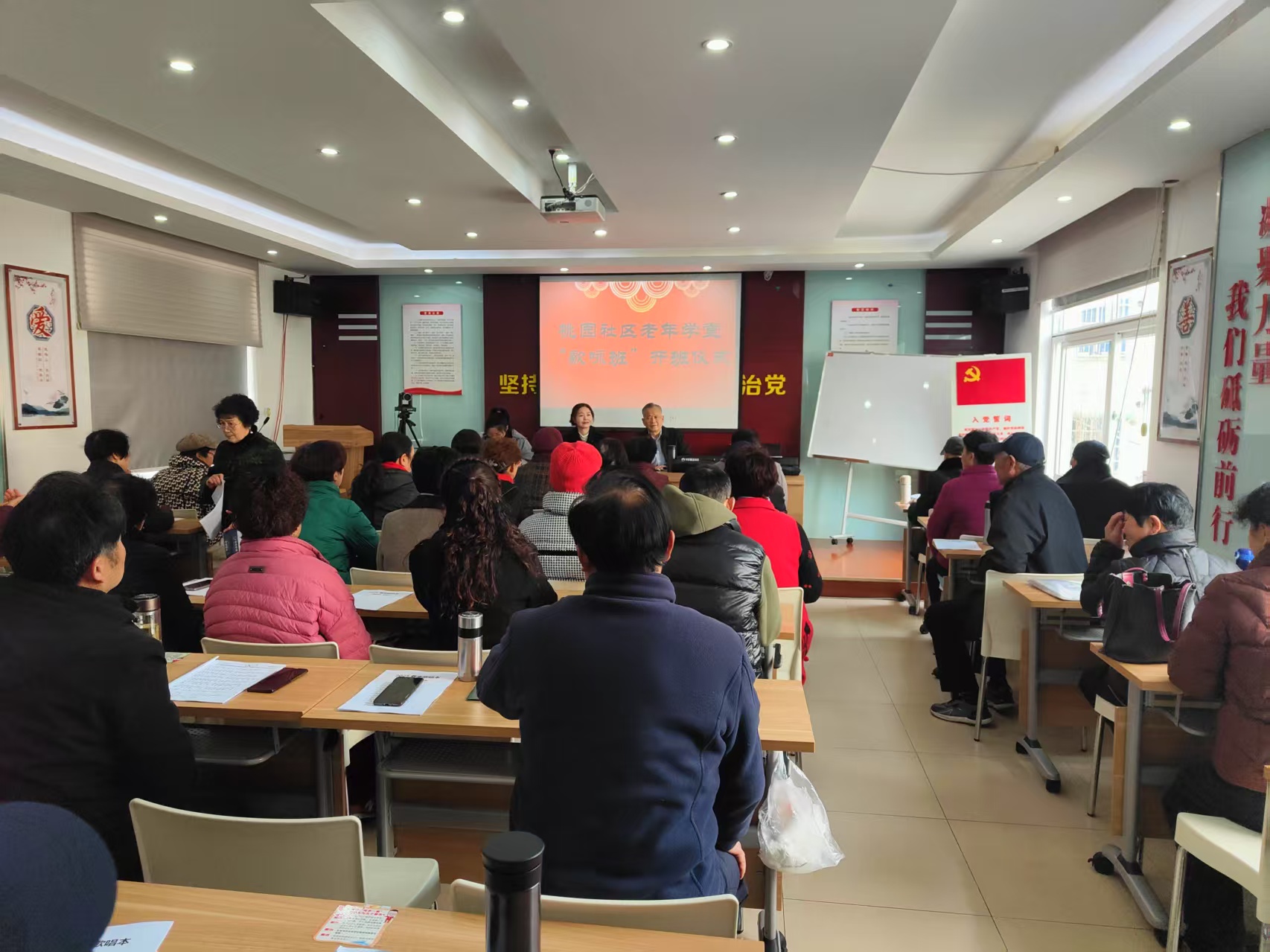 3月7日上午八點半,安吉社區(qū)教育學(xué)院昌碩學(xué)習(xí)中心即昌碩成校桃園社區(qū)老年聲樂班舉行開班活動,桃園社區(qū)的62位新老學(xué)員參加了本次活動。