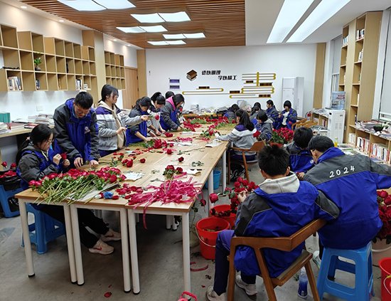 在臨平職高校園,全體女老師溫暖如春日的陽(yáng)光,是她們的溫柔明媚驅(qū)散了學(xué)生心頭的陰霾,是她們的智慧堅(jiān)強(qiáng)鼓勵(lì)著學(xué)生勇敢追尋屬于自己的光。校園處處充滿(mǎn)了愛(ài)與關(guān)懷,這份沉甸甸、無(wú)私奉獻(xiàn)的愛(ài),深深打動(dòng)著每一位臨職學(xué)子的心。來(lái)自計(jì)算機(jī)部數(shù)媒專(zhuān)業(yè)2419班的同學(xué)們,在趙櫻俊老師的帶領(lǐng)下,利用課余時(shí)間為老師們包裝玫瑰花等禮物,他們用行動(dòng)詮釋對(duì)老師的熱愛(ài)與感恩,也是2419班送給全體臨職女教師的特殊禮物。