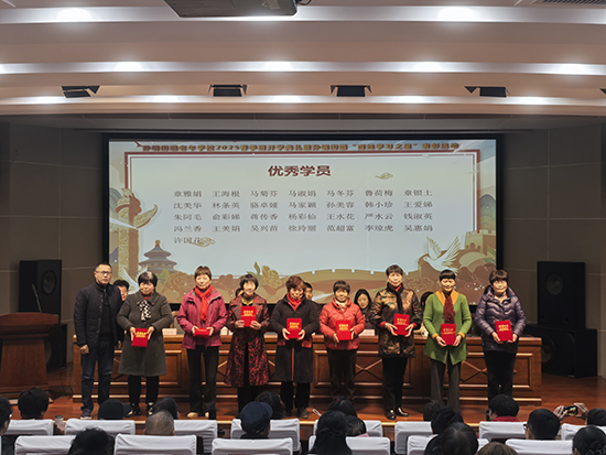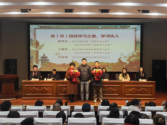 開學(xué)典禮在莊嚴(yán)的國歌聲中拉開序幕。孫端街道辦事處社事辦洪佳寧主任宣讀了優(yōu)秀學(xué)員、才藝獎(jiǎng)、“鄉(xiāng)村振興”優(yōu)秀志愿者、百姓學(xué)習(xí)之星、學(xué)習(xí)達(dá)人等受表彰人員名單。在過去一年中,有29位學(xué)員在老年學(xué)校日常學(xué)習(xí)期間表現(xiàn)優(yōu)秀,有39位學(xué)員在各級(jí)各類比賽活動(dòng)中取得優(yōu)異成績,有14位學(xué)員在助力“文化賦能 鄉(xiāng)村振興”行動(dòng)中表現(xiàn)突出,有10位各村推薦的同志被評(píng)為孫端街道2024年“百姓學(xué)習(xí)之星”。趙鐵峰副主任、王雪丹副主任、王招麗委員、車軍妍副局長分別為他們頒獎(jiǎng),街道黨工委副書記、辦事處主任謝煒為往年的省、市級(jí)百姓學(xué)習(xí)之星、學(xué)習(xí)達(dá)人送上鮮花,表示祝賀。獲獎(jiǎng)代表表示,將珍惜在孫端老年學(xué)校的學(xué)習(xí)生活,發(fā)揮自身余熱,共同努力把老年學(xué)校辦得越來越好。