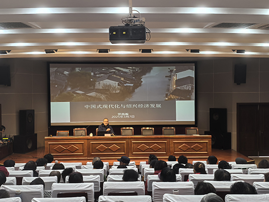 隨后,孫端成校“幸福·共富”大講堂第二期開講。紹興文理學(xué)院經(jīng)濟(jì)系副主任羅昌瀚作了《中國式現(xiàn)代化和紹興經(jīng)濟(jì)發(fā)展》的主題報(bào)告。報(bào)告從宏觀經(jīng)濟(jì)形勢與政策、解讀中國式現(xiàn)代化、紹興經(jīng)濟(jì)的發(fā)展與展望等三個(gè)方面作了介紹,既有理論的深度,又有鮮活的案例,給與會(huì)人員打開了一個(gè)廣闊的視角。