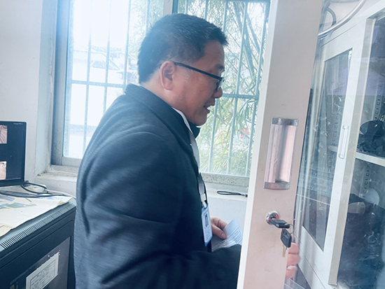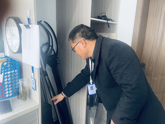 走進(jìn)警務(wù)室,按“專(zhuān)職保安”“技防設(shè)施”“安保器械”“門(mén)衛(wèi)管理”四塊內(nèi)容開(kāi)展檢查,著重是安保器械設(shè)備使用操作、記錄本的記錄情況?,F(xiàn)場(chǎng)問(wèn)詢(xún)了在崗的三位保安,都能比較熟練操作一鍵式報(bào)警設(shè)施和查找監(jiān)控回訪(fǎng)記錄,能使用鋼叉、盾牌、警棍、催淚器等安保器械。各類(lèi)設(shè)備專(zhuān)柜保管,擺放有序,數(shù)量符合要求,都在有效期內(nèi)。查閱《外來(lái)人員來(lái)訪(fǎng)登記簿》《校園周邊安全隱患排查、整改登記簿》《警務(wù)室值班巡查登記簿》《外來(lái)車(chē)輛進(jìn)出校門(mén)登記簿》等臺(tái)賬的記載情況,記錄完整齊全。校門(mén)關(guān)閉,拒馬擺放,升降柱升起,人員車(chē)輛出入都按要求檢查登記。來(lái)到校長(zhǎng)室,與校長(zhǎng)趙娜對(duì)“新時(shí)代‘楓橋經(jīng)驗(yàn)’教育督導(dǎo)及數(shù)字化轉(zhuǎn)型工作”作了溝通,探討了“校園安全管理”“糾紛化解(信訪(fǎng)化解)”“輿情防控”三塊內(nèi)容,重點(diǎn)是方案如何具體落實(shí)。