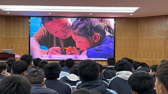 觀影結(jié)束后,副校長馮朋員以定日縣抗震救災(zāi)為引子,為西藏班的師生們帶來了一堂主題鮮明、內(nèi)涵豐富的思政課。馮校長深情的話語,字字鏗鏘,句句有力,他說道:“在災(zāi)難面前,我們用實際行動詮釋了責(zé)任與擔(dān)當(dāng),展現(xiàn)了團結(jié)與奉獻(xiàn)的力量。爭分奪秒的中國速度彰顯了我們對人民生命安全的莊嚴(yán)承諾;眾志成城的中國力量體現(xiàn)了我們中華民族面對災(zāi)難時的堅定信念;守望相助的民族團結(jié)鑄就了我們共同抵御風(fēng)雨、共創(chuàng)美好未來的堅實基石。”馮副校長的話語深深觸動了在場每一位同學(xué)的心,同學(xué)們報以熱烈的掌聲。最后,他鼓勵同學(xué)們要珍惜當(dāng)下,將來以實際行動回饋社會,為國家的繁榮和家鄉(xiāng)的發(fā)展貢獻(xiàn)自己的一份力量。