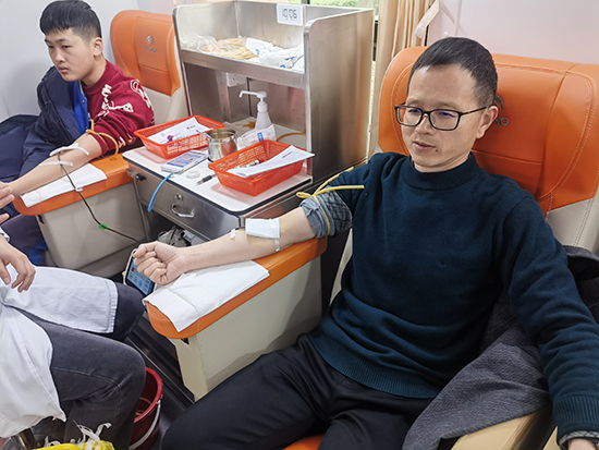 上午八時(shí),區(qū)中心血庫(kù)采血車(chē)周?chē)鷰熒懤m(xù)聚集,獻(xiàn)血師生們?cè)趯W(xué)生志愿者的暖心引導(dǎo),醫(yī)務(wù)人員的溫馨提醒下依次完成健康篩查、血液初檢等準(zhǔn)備,陸續(xù)踏上采血車(chē)進(jìn)行獻(xiàn)血。采血車(chē)?yán)铮炖蠋焺倓偨Y(jié)束獻(xiàn)血,醫(yī)生將400cc的血袋放入箱內(nèi),徐老師面帶微笑并鼓勵(lì)旁邊等候的同學(xué):“適量獻(xiàn)血對(duì)身體無(wú)害,同學(xué)們放松一點(diǎn)。”手中的獻(xiàn)血證,密密麻麻的記錄,代表著職教中心教師們多年來(lái)參與生命接力義舉,滿(mǎn)18周歲的同學(xué)們也用自己的實(shí)際行動(dòng),奉獻(xiàn)著新的青春力量。9時(shí)30分,活動(dòng)現(xiàn)場(chǎng)人聲鼎沸,達(dá)到高峰。