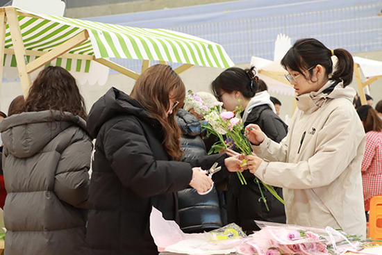 活動現場化身春日創意工坊,九大DIY項目任君挑選,校體育館內熱鬧非凡,處處洋溢著歡快的氣息。女教職工們齊聚于此,臉上綻放著燦爛的笑容。她們有的沉浸在創作的世界中,眼神專注而投入;有的三五成群,熱烈地交流著心得與創意。各個攤位上,琳瑯滿目的物品令人目不暇接,精致的飾品、手繪的工藝品、香甜的蛋糕……每一件都別具特色。女教職工們穿梭在攤位之間,仔細地挑選著自己喜歡的物品,著手制作。不少老師拎著裝滿“戰利品”的禮品袋,臉上洋溢著滿足的笑容,感慨道:“這次活動真是太贊了!不僅能放松身心,還收獲這么多心儀的物品當作節日禮物,幸福感簡直爆棚!”