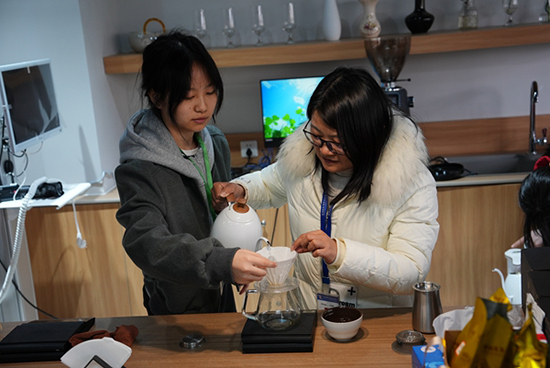 圖書館三樓的咖啡吧內(nèi),研磨咖啡豆的細(xì)碎聲與輕柔的音樂相映成趣。女教職工們或在咖啡師的指導(dǎo)下嘗試手沖技法,感受水溫與水流對(duì)風(fēng)味的影響;或倚窗而坐,品味特調(diào)的“春日限定”拿鐵,搭配一份小甜點(diǎn),享受難得的午后閑適。