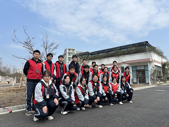 “三埋兩踩一提苗,根系舒展是關(guān)鍵。”活動(dòng)伊始,陸志方老師手持樹(shù)苗,面向師生現(xiàn)場(chǎng)示范標(biāo)準(zhǔn)化種植流程。從挖坑深度、土球處理到圍堰技巧,他強(qiáng)調(diào)“科學(xué)種植是樹(shù)木成活的基礎(chǔ),更是專(zhuān)業(yè)素養(yǎng)的體現(xiàn)”。園林班學(xué)生化身“技術(shù)指導(dǎo)員”,分組帶領(lǐng)志愿者實(shí)踐操作:揮鍬鏟土?xí)r保持坑壁垂直,回填土壤需分層踩實(shí),定根水要澆透澆勻……專(zhuān)業(yè)理論與勞動(dòng)實(shí)踐深度融合,讓每一株樹(shù)苗扎根更穩(wěn),生長(zhǎng)更優(yōu)。