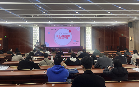 為進一步增強班主任對學生的心理關懷與輔導能力,建立和諧、積極的師生關系,賦能班主任隊伍專業(yè)化發(fā)展,3月11日,嘉興市建筑工業(yè)學校特邀嘉興市秀洲區(qū)康安醫(yī)院院長、黨支部書記沈明芳來校,為全體班主任開展《學生心理問題識別與干預》專題講座。學生處副主任陳云華主持講座。
