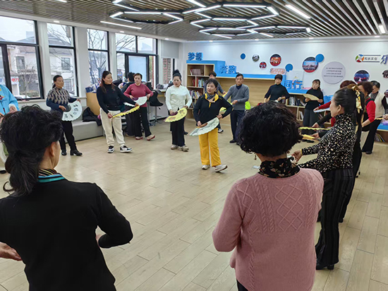 理論講解后,學員們開始實際練習。從拿扇、持扇到開扇、端扇等一系列動作,大家反復揣摩練習。學員張阿姨表示:“以前覺得戲曲表演看起來很簡單,自己上手才知道有多難。就拿這紙扇來說,一個開扇動作,力度、速度掌握不好,根本就沒有那個韻味。但通過唐老師的耐心指導,我現在感覺自己進步很大,對戲曲也有了更深的熱愛。”