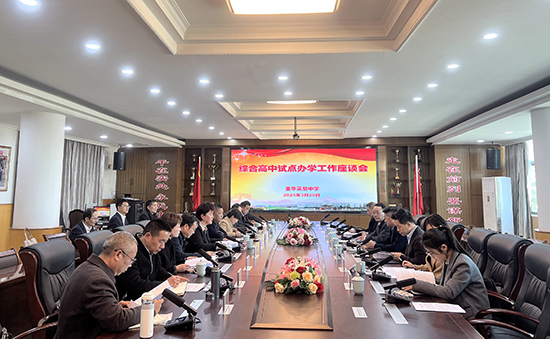 3月20日下午,金華市綜合高中試點辦學工作座談會在金華實驗中學召開。浙江省教育廳基礎教育處副處長、三級調研員鮑鐵虎,省教育廳基礎教育處干部管光海出席會議,金華市教育局黨組成員、副局長錢勝軍,市教育局基教處處長方曉蓮,市教育局職成高教處處長唐川,以及婺城區、武義縣、磐安縣教育局分管負責人,金華實驗中學、金華市第一中等職業學校、武義縣職業技術學校、浦江縣職業技術學校、磐安縣職業教育中心主要負責人參會,共同探討新時代綜合高中建設路徑與實踐模式。