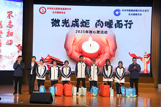 簽約儀式后,雙方還舉行了微心愿捐贈物品儀式。中國建設銀行慶元支行和慶元職高的全體黨員為慶元職高的學生們送上了精心準備的學習和生活用品。這些承載著關愛的物資,助力學生們實現微小的心愿,傳遞著融融暖意與深切關懷。捐贈儀式現場,學生們紛紛表示感謝,并表示將努力學習,以優異的成績回報社會的關心與支持。