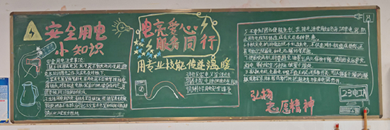 本次活動以“專業+”為核心,鼓勵學生將學科知識融入志愿服務場景設計。例如,21電商1、21電商2班以“鄉村振興 直播助農”為主題,將直播間搬上黑板,使黑板報成為連接校園與田野的數字農創孵化器,在粉筆與網絡的碰撞中重構青年助農新范式。23電工A班立志用專業技能傳遞溫暖,以“電亮愛心 服務同行”為主題,不僅宣傳了安全用電小知識,還做出了志愿服務的規劃,將專業技能轉化為社會服務能量,形成“科普—實踐—傳承”的志愿服務生態閉環。機械、汽修、康養、酒店管理等專業也紛紛結合專業特色,展示了他們正在進行的或即將進行的志愿服務模式,生動詮釋了青年志愿者的責任和擔當。