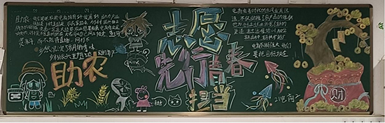 各班級充分發揮藝術創造力,采用粉筆漸變、丙烯著色、黏土浮雕等技法豐富視覺效果。部分班級增設“志愿故事角”,講述學生參與助農直播、敬老愛老服務、社區維修等真實經歷;另有班級設置“服務預約墻”,通過便簽留言收集師生需求,將黑板報轉化為志愿服務的實踐平臺。