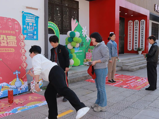 3月21日上午,諸暨市楓橋鎮百樹社區居委會門口的廣場上十分熱鬧,楓橋鎮社會組織服務中心與楓橋鎮團委、楓橋鎮舞蹈協會聯合正在舉行一場別開生面的春日喚醒計劃游園會。