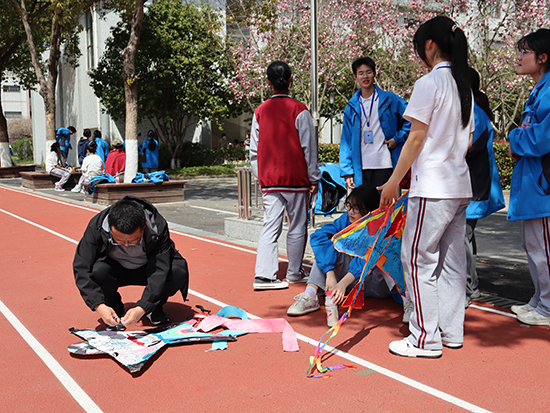 放飛環節中,同學們互相協作,憑借技巧與默契,讓一只只風箏翱翔于天際,為校園上空增添了一道亮麗風景線。