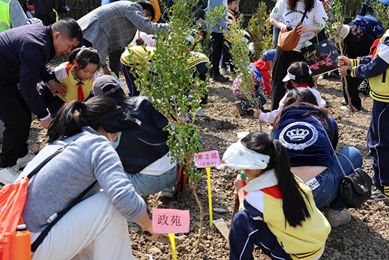 啟動儀式結束后,親子家庭們滿懷熱情地走進蘭里研學大本營農(nóng)事體驗區(qū),開啟了植樹實踐環(huán)節(jié)。現(xiàn)場,社區(qū)工作人員熱情服務,和家長、孩子們默契協(xié)作,有條不紊地體驗了挖坑、放苗、填土、澆水等培植過程。大家親手種下的不僅僅是樹苗,更是對未來的美好憧憬與希望。每一棵樹苗都承載著家庭、學校、社區(qū)對孩子們成長的期待,以及對綠色健康的向往。