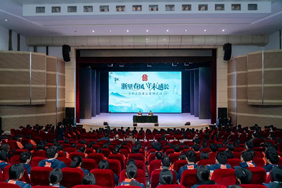3月28日,湖州市中級(jí)人民法院黨組書記、院長(zhǎng)肖國(guó)耀走進(jìn)浙江省湖州藝術(shù)與設(shè)計(jì)學(xué)校,以“法治副校長(zhǎng)”身份為500余名學(xué)生講授專題法治教育課。湖州市教育局黨委書記、局長(zhǎng)陳建良參加。