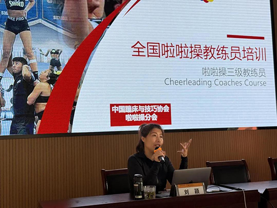 中國蹦床與技巧協會金牌導師劉穎通過理論與實操相結合的方式,系統解析啦啦操教學中的技術難點與動作規范,并對技術要點和難度動作解析等多個層面展開指導。參訓教師通過沉浸式學習實現專業技能與教學能力的雙向提升,考核合格者可獲得啦啦操三級教練員、裁判員資格證書。