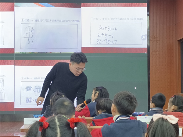 學(xué)員展示:夾浦小學(xué)的包淑嫻老師執(zhí)教“100以?xún)?nèi)數(shù)的認(rèn)識(shí)”一課,通過(guò)多元表征,借助結(jié)構(gòu)化的學(xué)習(xí)材料,在不同材料的求同比較中,系統(tǒng)建立數(shù)的概念;長(zhǎng)興第二小學(xué)的沈羽博老師執(zhí)教“100以?xún)?nèi)的筆算加法”一課,在口算加法的基礎(chǔ)上,通過(guò)比較點(diǎn)子圖、小棒、計(jì)數(shù)器等多種表征方式異同,并與豎式計(jì)算形成結(jié)構(gòu),體會(huì)豎式計(jì)數(shù)的簡(jiǎn)潔性;呂山鄉(xiāng)中心小學(xué)的吳佳維老師執(zhí)教“數(shù)量關(guān)系(一)”一課,從學(xué)生已有的知識(shí)出發(fā),借助畫(huà)圖等策略,尋求解決問(wèn)題的策略與方法。