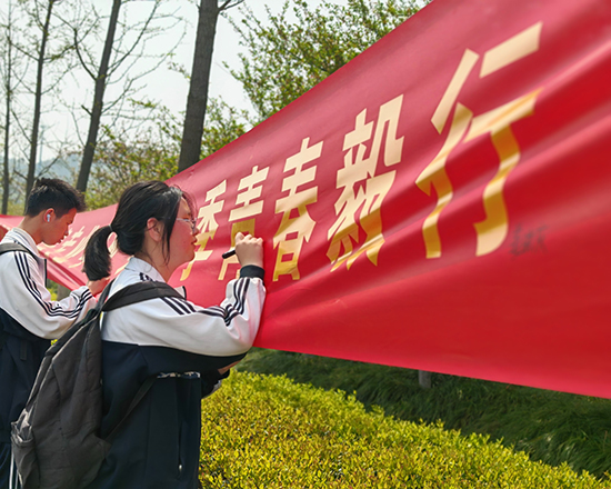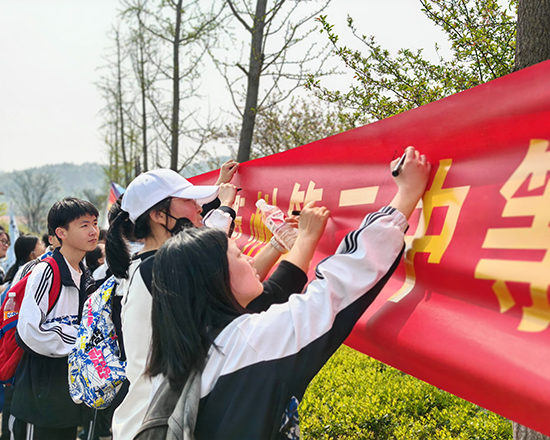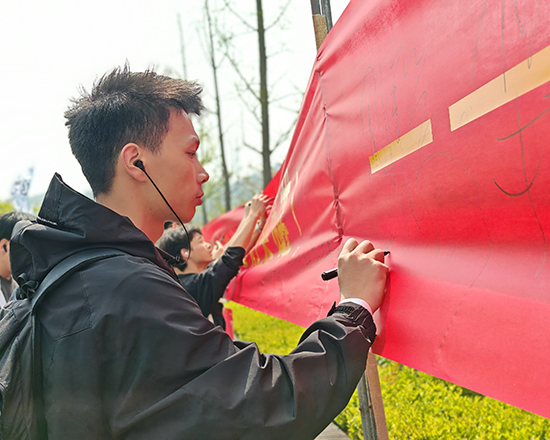 在迎賓公園,活動迎來了一個重要時刻。全體師生在“腳下有風,眼里有光,此刻的我是自己的英雄”“并肩作戰,毅路狂飆!青春不散,奮斗不止!”等橫幅上認真簽名,每一個簽名都承載著大家對“毅行青春路,共筑中國夢”的莊嚴承諾,彰顯著大家對祖國、對家鄉的熱愛和祝福。