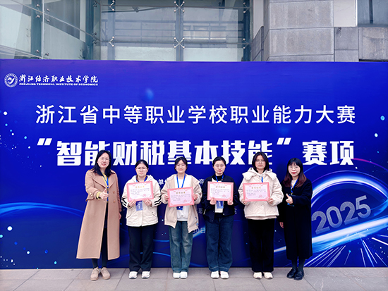 近日,2025年浙江省中等職業(yè)學(xué)校職業(yè)能力大賽“智能財(cái)稅基本技能”賽項(xiàng)在浙江省經(jīng)濟(jì)職業(yè)技術(shù)學(xué)院舉行。學(xué)校財(cái)會(huì)專(zhuān)業(yè)團(tuán)隊(duì)22會(huì)計(jì)1班李依婷、范秋雨、洪斯涵、裘樂(lè)妍等4名學(xué)生,與來(lái)自全省各地市的30組選手同場(chǎng)競(jìng)技,經(jīng)過(guò)三場(chǎng)激烈比拼最終榮獲團(tuán)隊(duì)三等獎(jiǎng)。