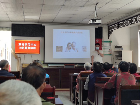本次培訓由安吉縣社區(qū)教育學院章村學習中心、安吉普康及章村村幸福鄰里中心聯(lián)合組織,特邀安吉復大口腔趙志醫(yī)生為村民們授課。趙醫(yī)生以生動的語言、形象的圖片,詳細講解了中老年人常見的口腔問題及預防方法,如牙齒松動、牙齦出血、口腔潰瘍等。