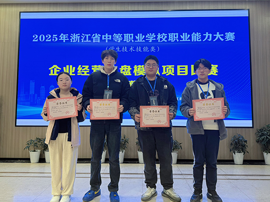 近日,2025年浙江省中等職業學校職業能力大賽(學生技術技能類)“企業經營沙盤模擬”賽項在浙江商業職業技術學院圓滿落幕。在這場匯聚全省中職精英的激烈角逐中,海鹽職業教育中心參賽團隊22會計2班曹羅杰、孟凡月,23會計2班趙瑾萱、劉鑫源等4位同學,憑借扎實的專業功底和出色的團隊協作,從全省20支精英隊伍中脫穎而出,榮獲省三等獎。