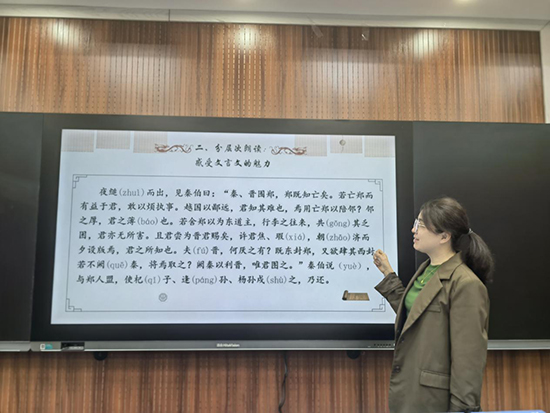 4月10日,諸暨市職業(yè)教育中心智慧教室迎來一場語文教學(xué)盛宴。由諸暨市教育局職成教負(fù)責(zé)人潘丹帶隊(duì),兄弟學(xué)校骨干教師與本校教師共聚一堂,共同觀摩兩堂極具深度的語文課。鐘陽瓊和王航燕兩位教師分別以《燭之武退秦師》和《“房”中窺人:洞察周樸園》為課題,以策略解構(gòu)賦能高考實(shí)戰(zhàn),用文本對話叩擊人性深度,為職業(yè)教育語文教學(xué)改革獻(xiàn)上創(chuàng)新答卷。