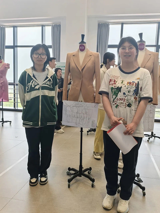 值得一提的是,本屆賽事打破往屆“師生同賽”的慣例,要求選手全程獨(dú)立完成競(jìng)賽內(nèi)容,這對(duì)學(xué)生的自主應(yīng)變能力提出了更高要求。備賽期間,服裝教研組的老師們化身“全能導(dǎo)師”,從設(shè)計(jì)思維培養(yǎng)到工藝細(xì)節(jié)打磨,為選手量身定制階梯式訓(xùn)練計(jì)劃。旅服學(xué)部技能副主任胡偉英,服裝專(zhuān)業(yè)教師鄭雙飛、汪培蕾、蔣世伊等連續(xù)兩個(gè)月放棄休息時(shí)間,白天指導(dǎo)學(xué)生操作,夜晚復(fù)盤(pán)技術(shù)難點(diǎn);李文巧老師還將企業(yè)實(shí)習(xí)經(jīng)驗(yàn)融入備賽方案,助力學(xué)生突破傳統(tǒng)設(shè)計(jì)局限;宋冠赟老師整理了歷年賽事真題,鼓勵(lì)學(xué)生將理論知識(shí)靈活應(yīng)用于實(shí)際比賽中。正是這支“敢打硬仗、能打勝仗”的教師隊(duì)伍,用他們的專(zhuān)業(yè)精神和無(wú)私奉獻(xiàn),為學(xué)生們搭建起了成長(zhǎng)的階梯。