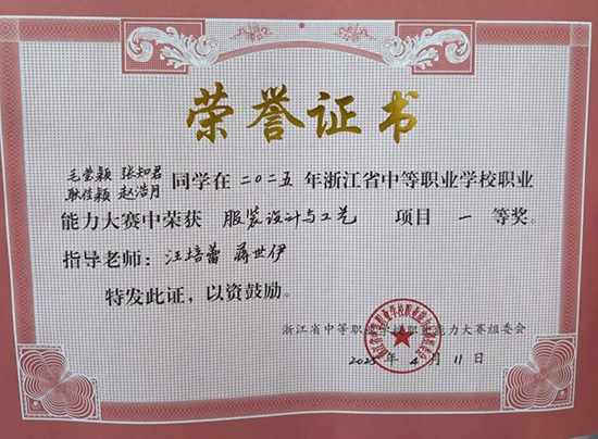 4月9日至11日,2025年浙江省中等職業(yè)學(xué)校職業(yè)能力大賽(學(xué)生技術(shù)技能類(lèi))“服裝設(shè)計(jì)與工藝”項(xiàng)目比賽在浙江紡織服裝職業(yè)技術(shù)學(xué)院舉行。北侖職高服裝專(zhuān)業(yè)代表隊(duì)在大賽中憑借精湛的技藝與獨(dú)具匠心的設(shè)計(jì)從眾多參賽隊(duì)伍中脫穎而出,一舉斬獲第一名的佳績(jī)。