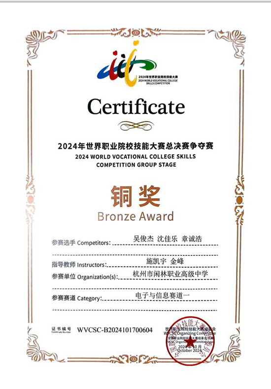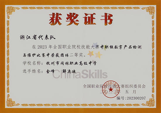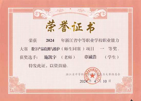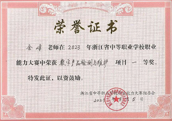 2023年,學校首次參加“數(shù)字產(chǎn)品檢測與維護”省賽,就在該賽項中獲得一等獎,在當年的國賽中獲得銀獎;2024年,再次在該賽項中獲得一等獎,并在當年世界技能大賽中獲得銅獎。