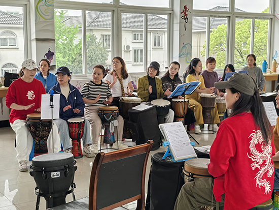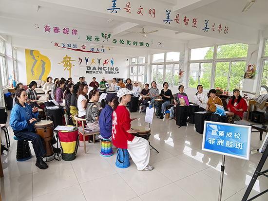 4月12日下午,安吉縣社區(qū)教育學院昌碩分院(昌碩成校)市民夜校的非洲鼓班迎來了本學期第三次授課。教室里洋溢著歡快熱烈的氛圍,在專業(yè)老師的指導下,40多名學員全情投入,用雙手拍打出充滿活力的節(jié)奏。