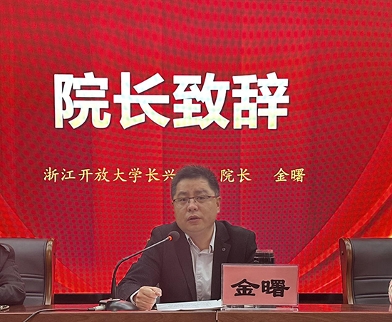 9時20分許,開學典禮在優美的浙開大校歌聲中拉開帷幕。金曙首先對新學員的到來表示歡迎,用三個優秀校友的案例故事和三點建議,為大家解讀開放教育的時代使命與未來圖景。金院長強調指出,“終身學習力”與“數字化賦能”是開放大學賦予每位學子的核心能力,并對大家提出殷切期望。