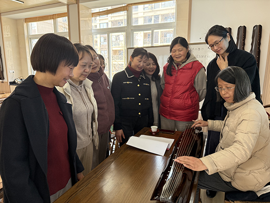 左琴右茶班的學員在管老師的教學指導下,基本都能彈小曲啦。“心放松、氣沉降,是彈琴時建立深度連接的前提。所謂深度的連接,可以認為是通過彈琴,身心沒有任何掛礙地松掉了,忘掉并融于當下。啟用‘只彈一句’的練琴方法,時間久了,氣息常常處于沉降的狀態,手下有絕對的把握,人前彈琴便不會慌張了。”管老師看到大家彈琴緊張時就會指導大家放輕松。