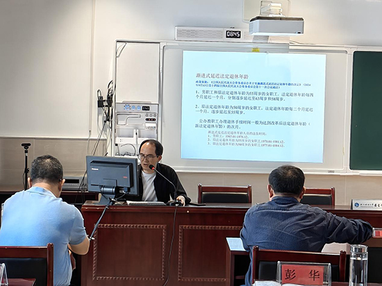 時院長首先宣布了會議的流程主要有兩項:延遲退休的政策講解和班主任工作會。隨后,黨政辦主任彭華帶領大家集體學習了國家有關延遲退休的政策精神和具體內容,同時為大家答疑解惑。現場互動良好,使各位老師更加清楚了改革后的退休政策。
