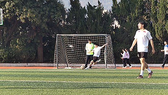 本屆足球賽共吸引全校16個班級、近200名運動員參與。賽場上,球員們默契配合、奮勇拼搏:前鋒帶球突破如疾風驟雨,后衛(wèi)防守卡位穩(wěn)如磐石,門將飛身撲救屢現(xiàn)神勇表現(xiàn)。場邊觀眾的吶喊聲、助威聲此起彼伏,將賽事氛圍推向高潮。