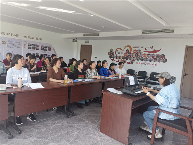 王菲的聲音,空靈中帶著幾分沉靜與慈悲,如同山間清泉,潺潺流淌,洗凈塵世的喧囂,直抵靈魂深處。徐老師從老年人的特點出發,選擇適合的調子,先教會大家唱譜,特別是切分音符,徐老師一遍一遍地示范,學員一次一次地更正,一節課大家就熟練地唱會了譜子。第二節課,大家就唱詞。徐老師先帶大家感受歌詞的意思,感受每一句歌詞蘊含著對生活的感悟,對生命哲學的深刻詮釋。然后,帶著這份感悟,一句一句地教唱。大家學得特別認真,再加上這首歌已經聽了多次,所以不一會兒就會唱了。