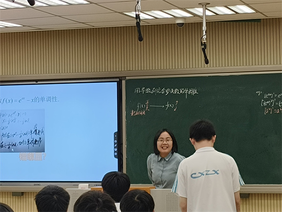 浙江省正高級教師、永嘉中學周瑛老師執教高二年級《一類函數與導數問題的探究》一課,周老師從學生作業中出現的問題入手,層層剖析,整節課以學生為中心,注重培養學生的思維力和學習力。課后周瑛老師作專題講座《洞悉高考題源 回歸教材本質——淺談基于核心素養下的導數復習》,講座從高考真題的破題、解題、教材探源開始,得出導數知識體系的構建方法,再給出如何從高觀點解決一類凹凸最值問題。讓老師們體會到如何通過設計“概念生長鏈”去引導學生深度思考,幫助學生從整體上把握和理解導數知識,培養數學核心素養。