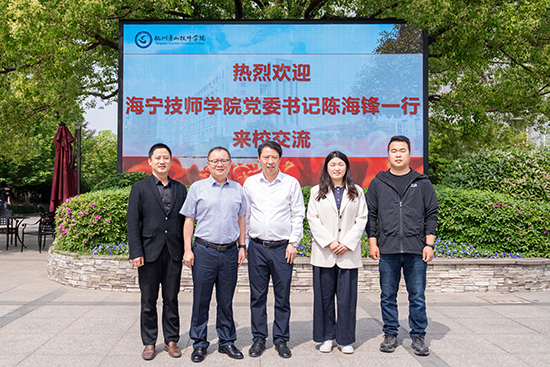 校黨委副書記、校長姚忠杰一行4人來到杭州市中策職業學校,該校黨委書記楊瓊飛、校長陸旦進行了熱情接待。