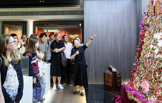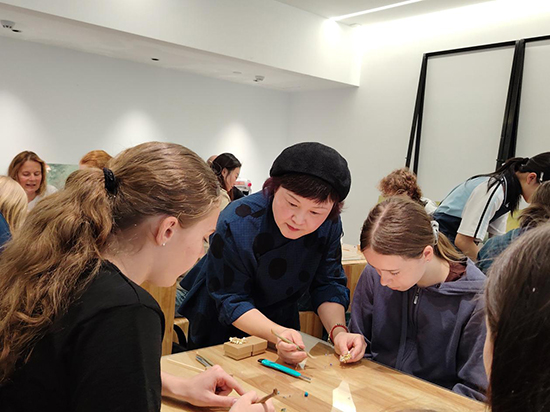 特別值得一提的是,在甌塑非遺傳承大師單曼曼的悉心指導下,德國師生們親手拿起塑形工具,沉浸式體驗甌塑制作的獨特魅力。從揉捻彩色油泥,到勾勒山水紋樣,指尖的藝術跨越語言隔閡。24工美2班的學生志愿者們全程耐心協助,以熱情的交流,搭建起藝術溝通的橋梁。