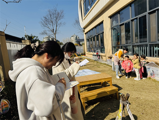 教師們在轉塘幼兒園托班的跟崗實踐過程中,不僅拓寬了教育視野,也汲取了寶貴的實踐經驗。從晨間接待、生活照料、室內活動、室外游戲活動到離園等環(huán)節(jié),全流程觀察托育細節(jié)。重點記錄環(huán)境創(chuàng)設中的安全性與適齡性,聚焦生活環(huán)節(jié)的標準化操作,關注健康監(jiān)測、應急處理及特殊幼兒的個性化護理方案。通過崗位對標、視導觀摩,教師們直觀感受到托班保教更強調“生活即教育”的照護融合,需以精細化、個體化的方式滿足嬰幼兒發(fā)展需求。