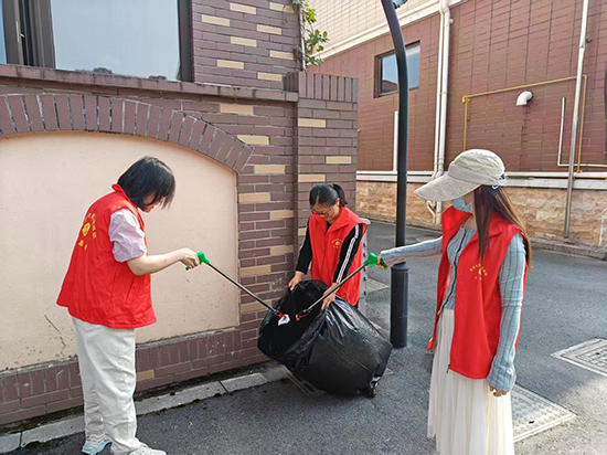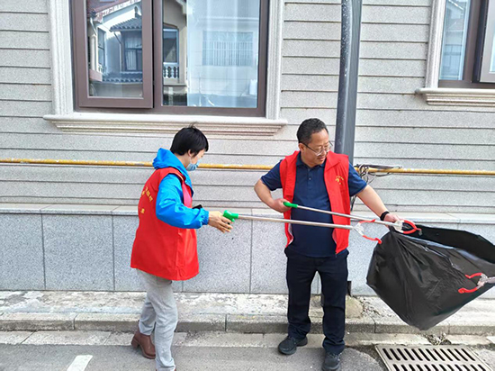 17位老師分成6個(gè)組別,由校領(lǐng)導(dǎo)和老教師分別擔(dān)任組長,負(fù)責(zé)事先劃定的責(zé)任區(qū)域內(nèi)的衛(wèi)生工作。他們或拿笤帚,或持簸箕,沿路巡視,遇到垃圾或牛皮癬等影響居民居住環(huán)境的東西都眼疾手快地處理掉。芝里四區(qū)雖然是安吉縣年代較久的一批老小區(qū),但區(qū)域內(nèi)的環(huán)境狀況較優(yōu),只是偶爾有居民院子里盛開的鮮花瓣誤落在馬路上,與泥水混在一起,會(huì)對(duì)小區(qū)內(nèi)老人的出行造成一定的安全隱患。安吉學(xué)院的志愿者老師都一一清理干凈,一絲不茍的志愿服務(wù)態(tài)度受到小區(qū)工作人員的熱烈褒揚(yáng)。
