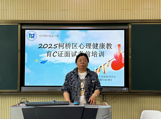 為加強學校心理健康教育隊伍建設,提升教師心理輔導能力,紹興財經旅游學校學生發展指導中心于4月9日組織開展了“2025柯橋區心理健康教育C證面試考前培訓”活動。尚未取得心理C證的老師與對心理輔導充滿興趣的專兼職心理教師參與培訓,通過理論學習和實踐鍛煉,進一步夯實了心理健康教育專業基礎。