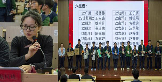 校團委倪超琦老師宣讀上學期以來各個部門成員星級考核名單,隨后由啟行學部團總支書記斯珂琦老師、啟德學部團總支書記鄭楊潔老師、啟知學部團總支書記王彬倩老師為優(yōu)秀學生會干部頒獎。