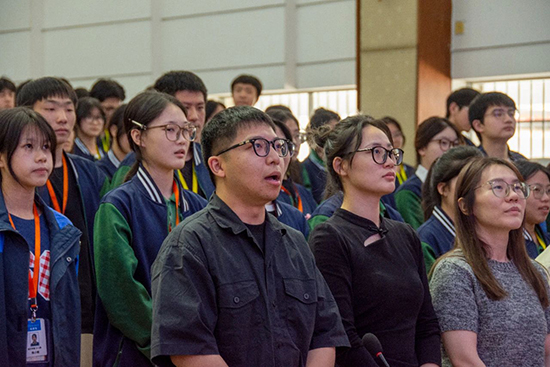 會議最后全體起立奏唱中國共產(chǎn)主義青年團團歌。所有人挺直脊梁,目光如炬,滿懷熱忱與自豪,激勵著在場的每一位青年學子,以更加飽滿的熱情、更加昂揚的斗志,投身到未來的工作中,讓青春在為同學服務、為學校發(fā)展的征程中綻放絢麗之花。(徐亮)