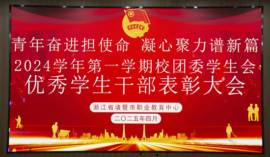 4月23日,諸暨市職業(yè)教育中心2024學年第一學期校團委學生會表彰大會在校多功能廳隆重舉行,本次大會主要為了進一步貫徹“服務師生 服務學校”的理念,更好的推動校團委學生會的工作與發(fā)展,著重重申學生干部的帶頭作用,為未來的工作奠定基礎(chǔ),同時對于上學期的優(yōu)秀學生干部進行獎勵與表彰。