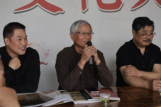 諸暨市三賢研究會副會長、魏廉書畫社社長魏仁虎主持。與會人員圍繞“魏湘的書畫藝術如何發掘傳承”等話題展開研討。俞琦杰概括為三個“風”:先生之風,得其遺風,如坐春風。許紹滿稱“一個村能舉辦這樣有檔次的研討會,不光諸暨范圍內絕無僅有,估計省內外也不一定會有。這樣的研討會非常接地氣,具有更大的意義和示范作用。”丁曉爾指出:魏氏家廟作為一個村文化禮堂,布置得如此高大上,在魏湘故里舉行其書畫藝術研討會,是最合適也是最好氛圍的地方。魏湘作為一個國家級書畫人才,值得深入挖掘、研究和學習。中華詩詞學會會員、中國楹聯學會會員、諸暨市詩詞楹聯學會名譽會長、諸暨市三賢研究會副會長徐建勇概括為三點:一是魏湘的畫作,學老蓮,頗具陳氏風格,更有自己筆墨特色;二是他的書法功底深厚,后期亦多老蓮風貌;三是對所見幾首題畫詩,不僅合律,藝術水平也很高,堪稱文人畫家。諸暨市文史專家潘丹則稱:在中國書畫史上,明末清初的陳洪綬(號老蓮)以其高古奇崛的畫風獨樹一幟,而清代畫家魏湘則是這一藝術脈絡的重要傳承者與創新者。最后,與會專家提出了建議與對策,一致認為:魏湘的書畫藝術繼承老蓮的風格,有獨到之處,要通過各種渠道,對魏湘其人、其詩文、其書畫藝術加強挖掘整理,更好地予以呈現。